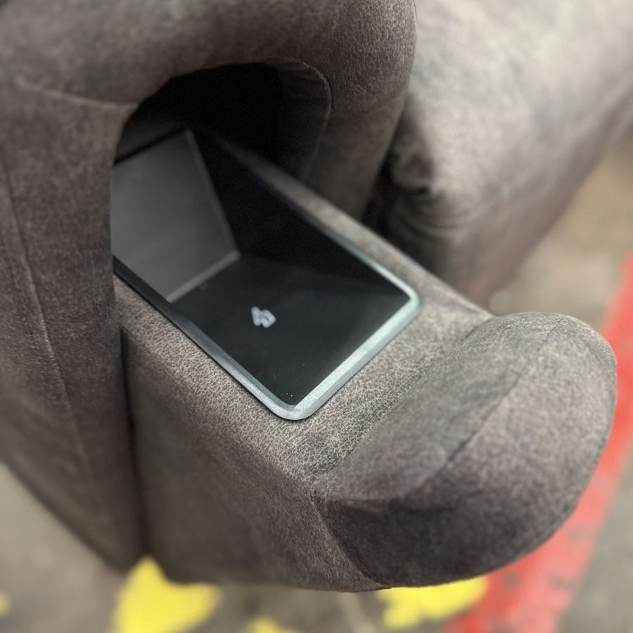 Relax in style with the 894 Stanton Lift Chair, upholstered in luxurious Infield Godiva fabric for a soft, plush feel and modern aesthetic. This power lift chair features a hidden wireless charger underneath the chair's arm and a USB port in the remote control, ensuring your devices stay charged and within reach. Underneath the other arm is a secret cupholder. Perfect for both everyday lounging and entertaining, this lift chair blends comfort and convenience seamlessly.