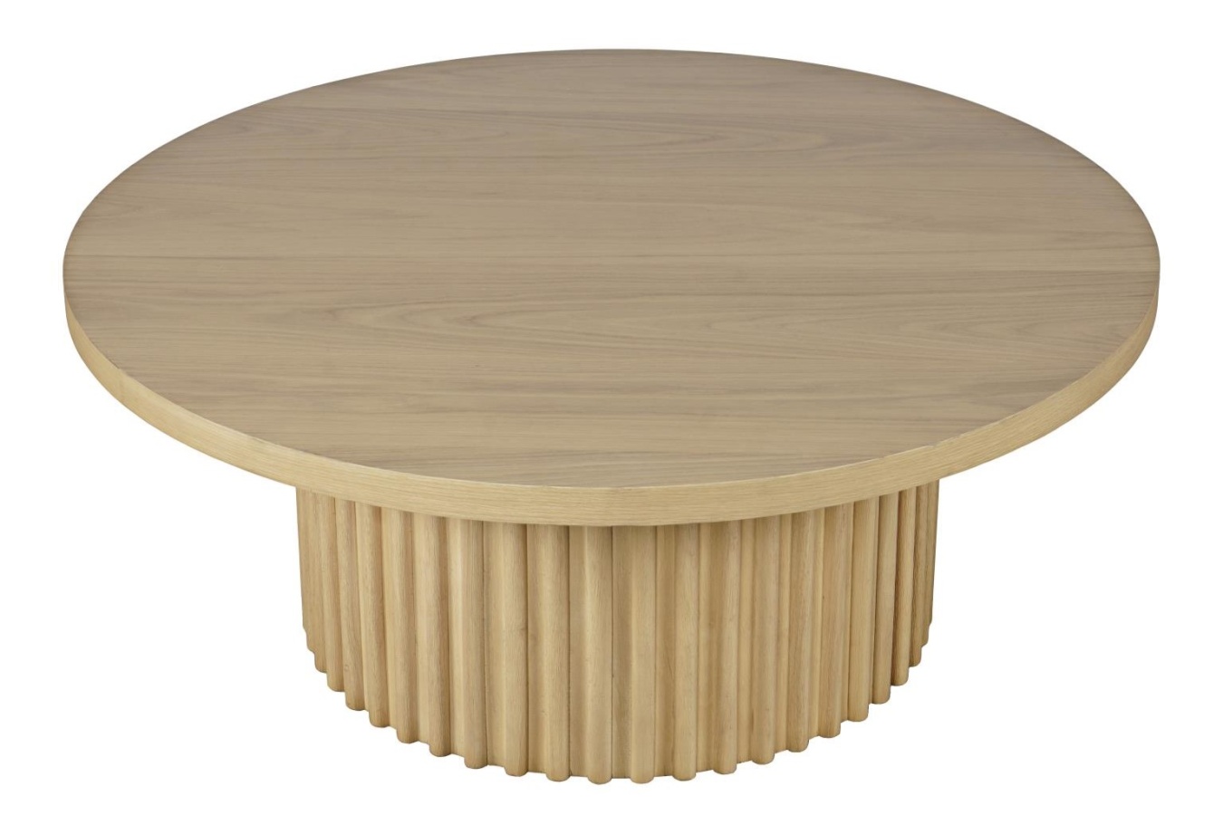 The Ellington Collection, featuring the Auden Occasional coffee table, end table, and sofa table, boasts elegant design elements such as fluted bases. This collection will be available in two timeless finishes: natural and chestnut.