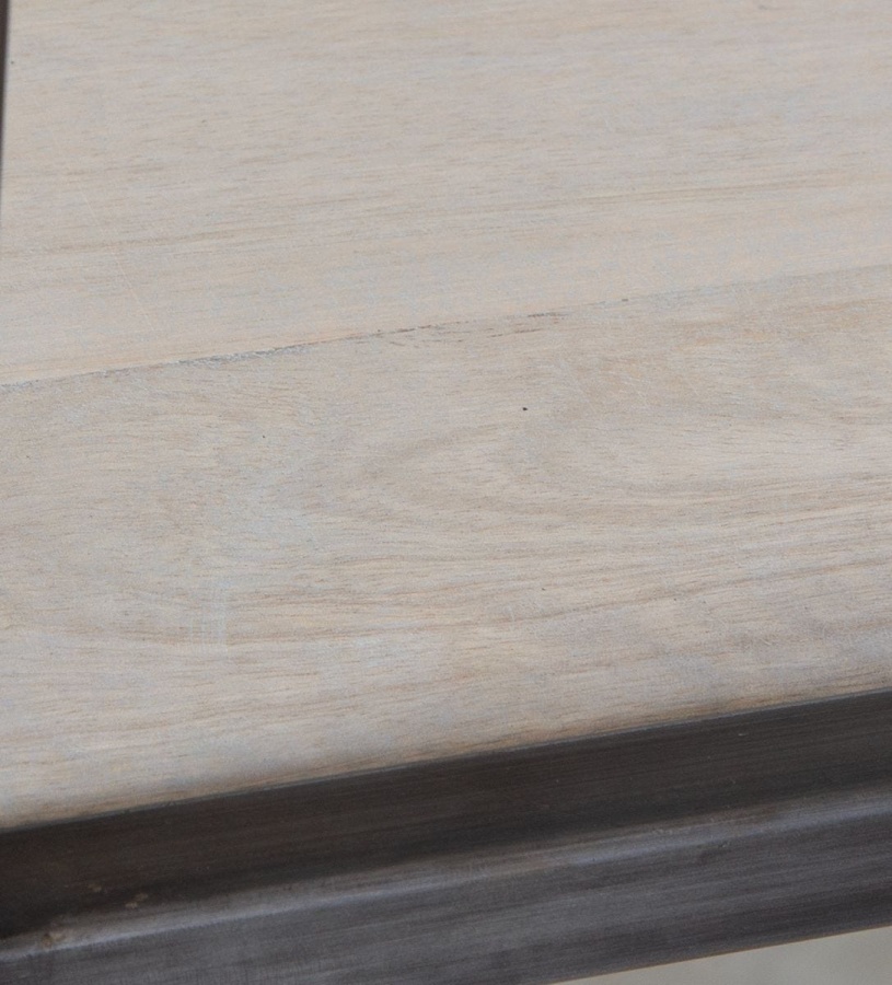 Boasting with display space, the Baldwin Etagere is a versatile and streamlined piece that has a place in any home. The iron frame is finished in clean gunmetal with 5 shelves in whitewashed mango wood. Distance between shelves is 16".