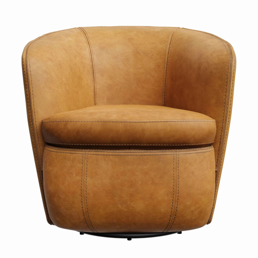 Our chic Barolo leather swivel chairs feature a classic yet versatile silhouette that fits effortlessly into almost any room. This low-profile barrel seat is wrapped in glove-soft leather, offering 360-degree swivel action for quick pivots in any direction. Bold decorative stitching elevates this chair to the next level, securing its place as a tried-and-true staple piece in your living space.