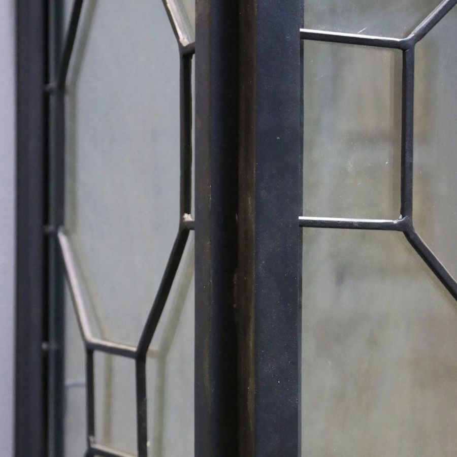 - Striking Geometric Door Overlay: Interlocking octagons and squares in black metal.
