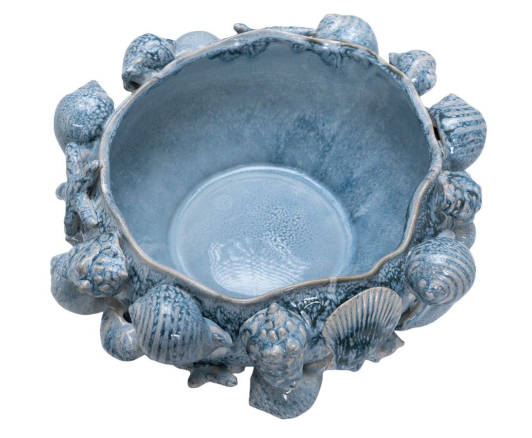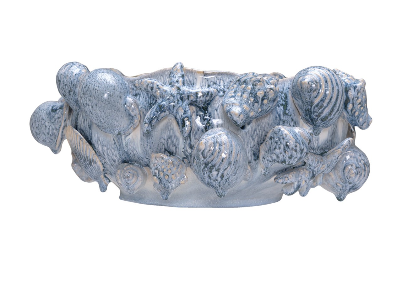 The Varlan Bowl captures the beauty of the sea with a sculptural design that transforms functional stoneware into a decorative centerpiece. Crafted in blue stoneware and detailed with an array of raised seashells, coral-inspired textures, and organic surface variations, this bowl brings coastal charm and artisanal artistry into any setting. Measuring 14 inches in length by 14 inches in width and 6 inches in height, its substantial size allows it to serve as a striking centerpiece for dining tables, coffee tables, or console displays. The rounded silhouette combined with its shell-encrusted surface creates an eye-catching mix of texture and dimension, making it equally suitable for standalone display or for layering into curated arrangements. Its ocean-inspired design resonates with both beachside living and refined interiors seeking a touch of natural character. Whether styled as a decorative catch-all, left empty as a sculptural object, or filled with seasonal accents, the Varlan Bowl offers versatile design potential.
