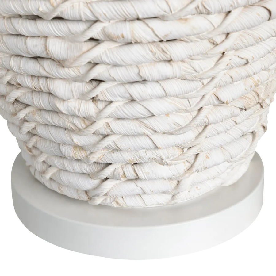 Bring rattan finish and looks to your living space with the Crestview Collection Cala Saona Table Lamp. The smooth cream and white finish of the lamp's base leads right up to the oatmeal toned linen shade, keeping the look and feel comfortable and warm. Add this piece to your reading area or nightstand and brighten the space.