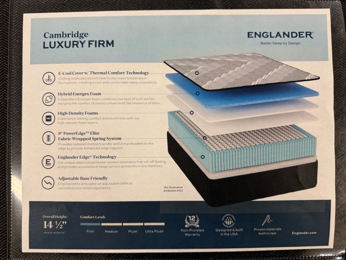 - Hybrid Energex Foam: Englander's Energex foam combines the best of both worlds, merging the comfort of memory foam with the resilience of latex.