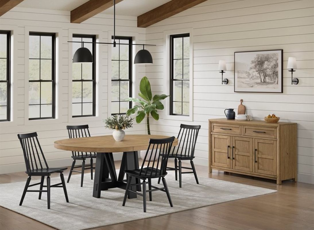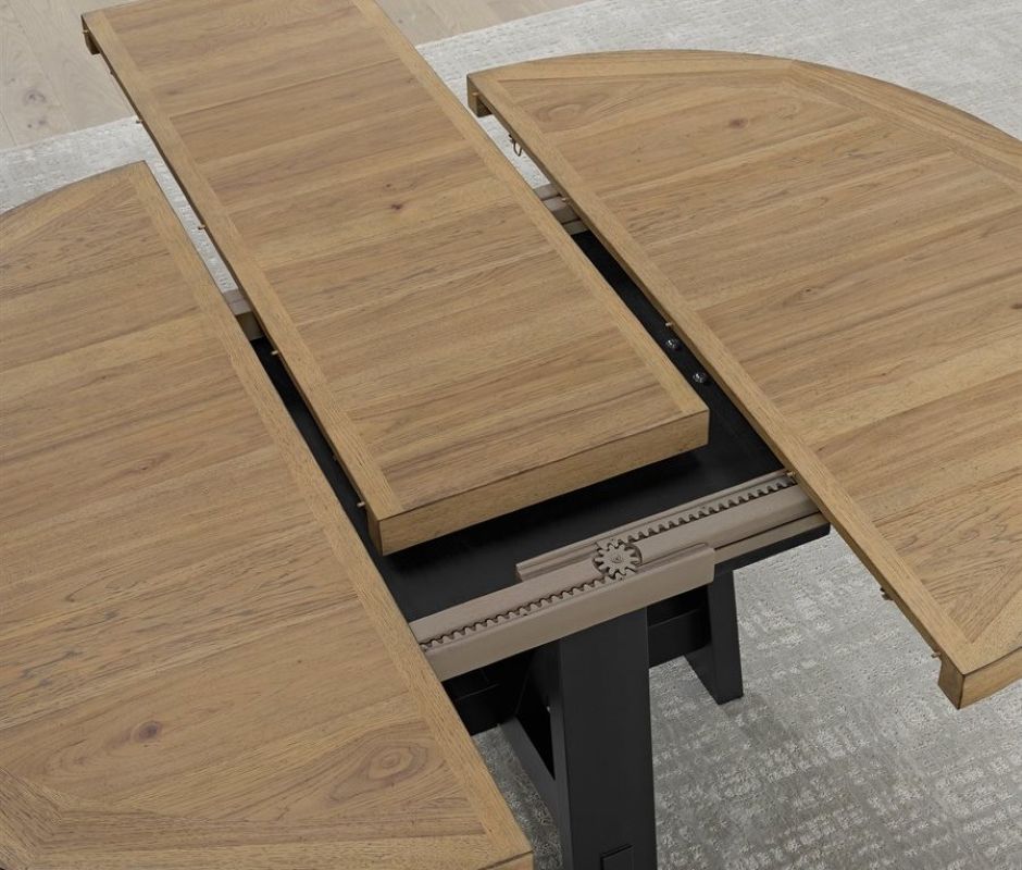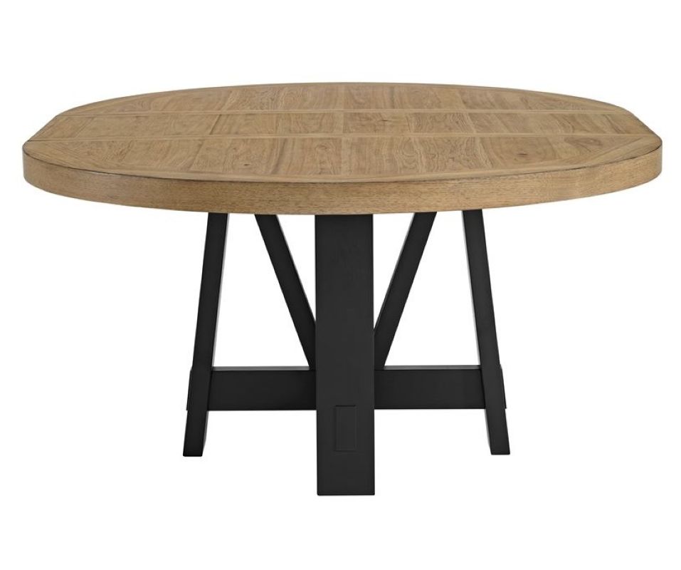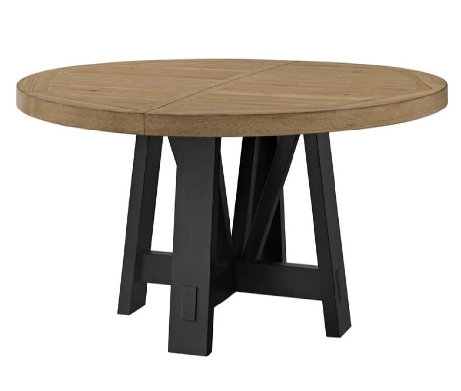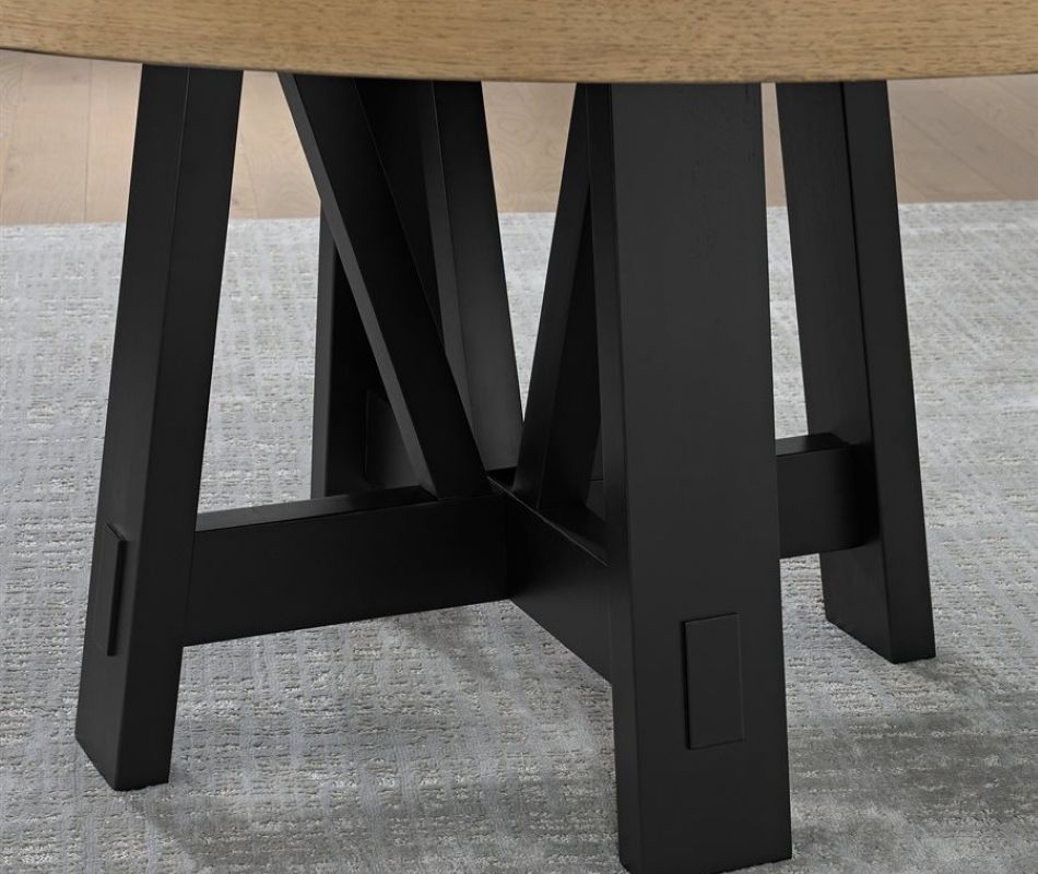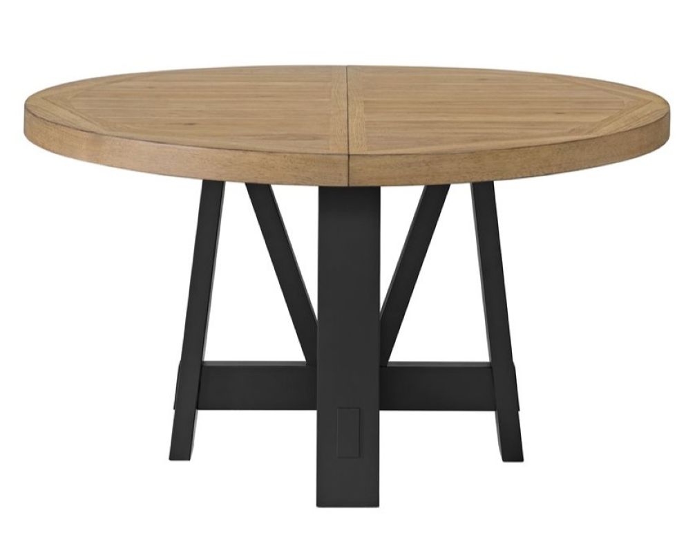 This striking two-tone piece features a warm natural hickory brown tabletop contrasted by a bold, black-finished base, making it a versatile anchor for both rustic and contemporary dining spaces. Built from high-quality hickory veneers and hardwood solids, this table is designed for the rigors of everyday dining while maintaining its designer appeal. The 54-inch round design is perfect for intimate family gatherings, and its smooth extension mechanism allows it to expand to 72 inches to comfortably accommodate more guests.