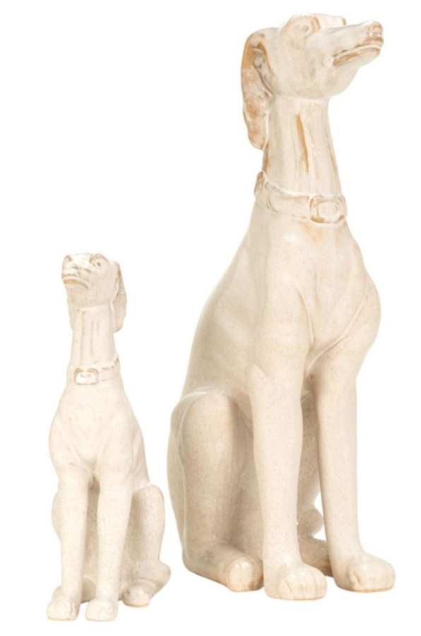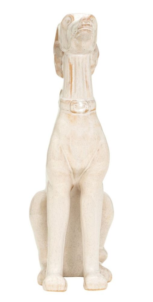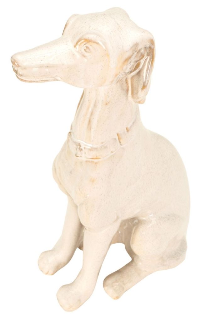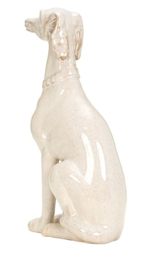 Add a touch of classic elegance and loyal charm to your home decor with the Clive Large Sculpture. This delightful figurine captures the graceful silhouette of a seated greyhound or whippet, rendered in a beautiful, glossy cream glaze with subtle speckles. Its poised and attentive posture makes it a captivating accent piece for any room. The Clive Large Sculpture is a charming and sophisticated decorative piece that is sure to be admired by dog lovers and design enthusiasts alike.