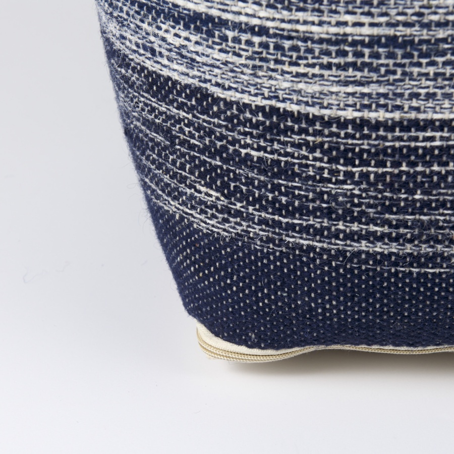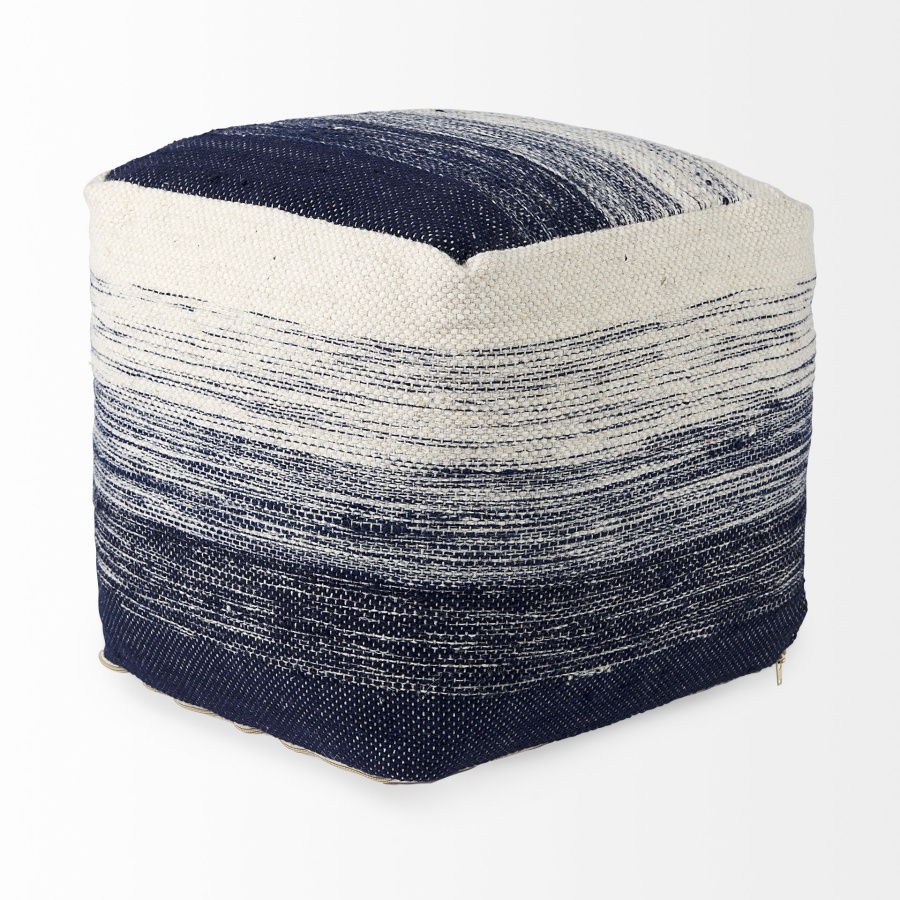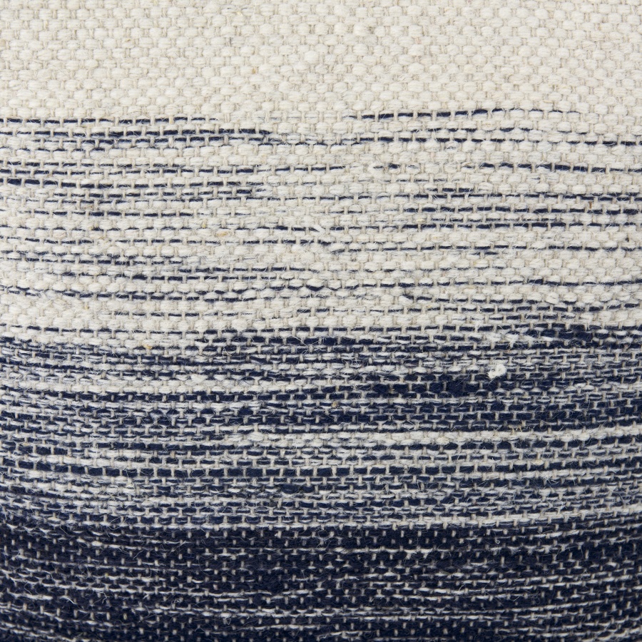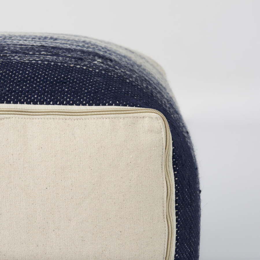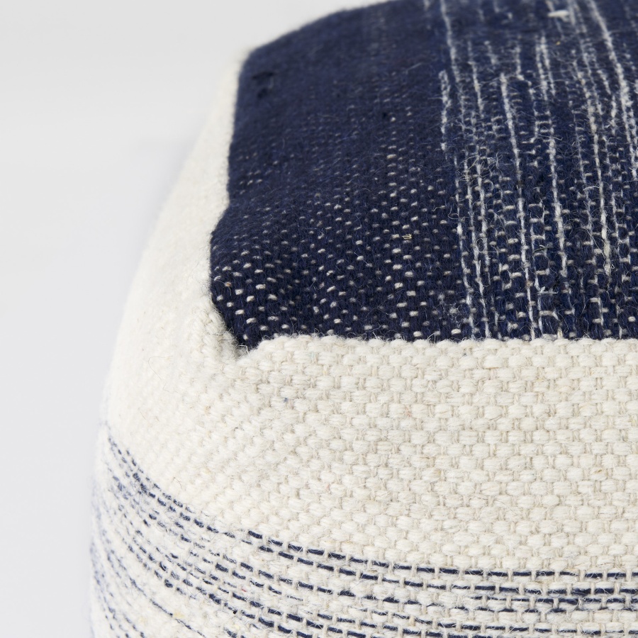 Damini is constructed from a blend of wool and cotton, making it a durable and comfortable option for your home. Finished in a beautiful blend of cream and shades of blue, the Damini features a subtle stripe pattern and texture. This pouf makes the perfect addition to homes based on the coastal design style, but can also add the perfect coastal and tropical element to a variety of design styles.