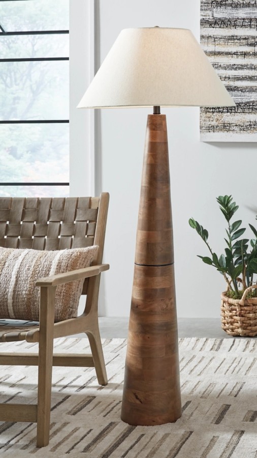 Clean, contemporary style can be sleek and shiny—or subtle and earthy. We love how the Danset floor lamp falls into the latter category. Pairing a stylish shade with a wood base bathed in a honey brown finish, it has a delightfully different yet simply illuminating look. It's the perfect accent when staged in the living area or TV room.