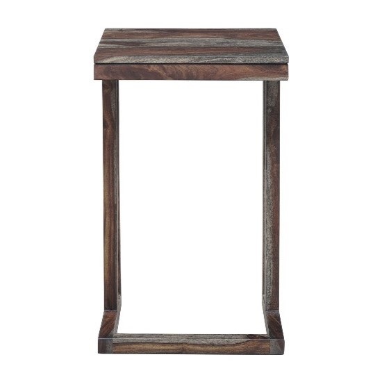The Fall River C Table features a rich black walnut finish and elegant architectural double legs. Handmade from solid sheesham wood, this chic accent piece is a perfect spot for your coffee or laptop.
