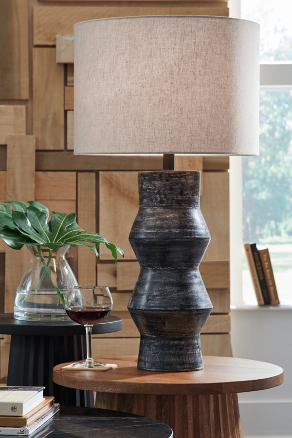 Add a touch of casually cool style to your home with the Kerbert table lamp. The terra cotta base sports a black rubbed finish that effortlessly complements a wide range of decor and color palettes. This versatile and illuminating choice is sure to be the glowing centerpiece of your TV room, inner sanctum or home office.