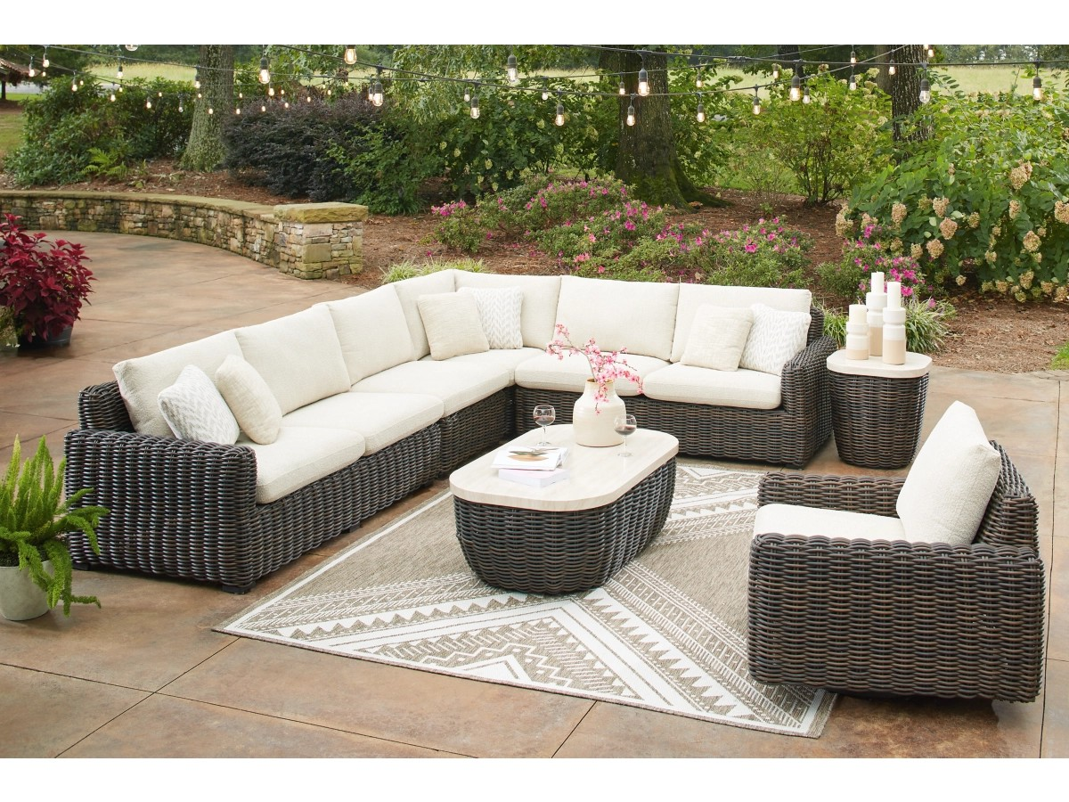 - All-weather resin wicker handwoven over rust-resistant aluminum frame with durable powder coated finish