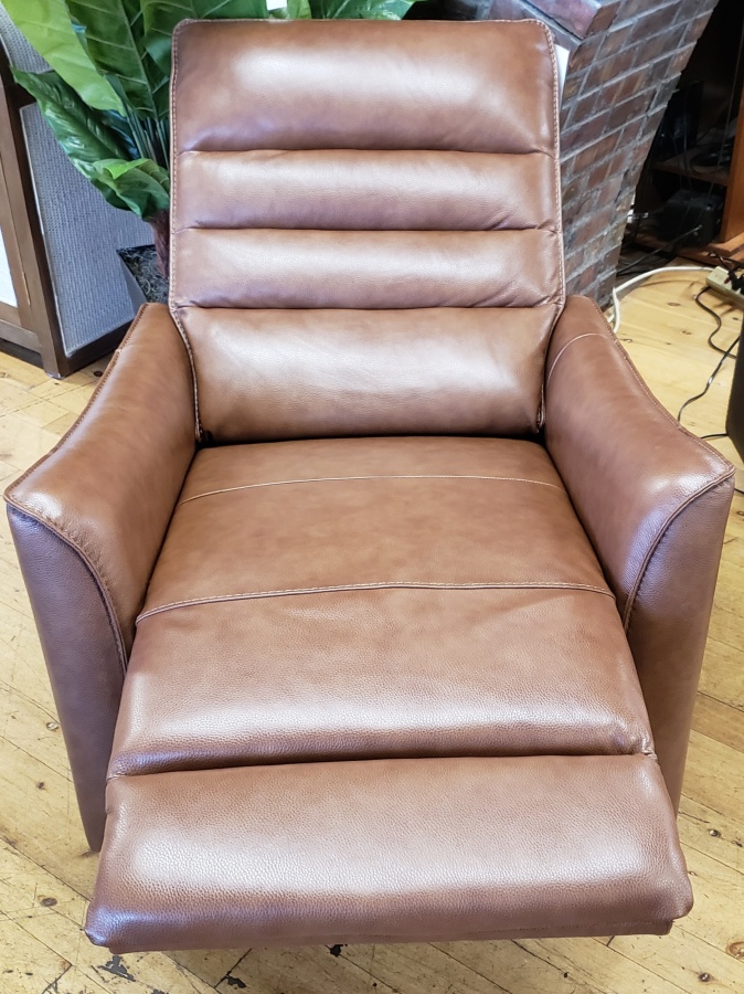 Leather and Vinyl Match Upholstery: Upholstered in a blend of leather and vinyl match, this recliner combines the luxurious look and feel of leather with the durability of vinyl. As you sit, the sensation of leather envelops you, encasing not only the arms but also covering the seat, while vinyl swathes the sides and back of the recliner. The brown color adds a sophisticated touch to any living space while effortlessly complementing various decor styles.
