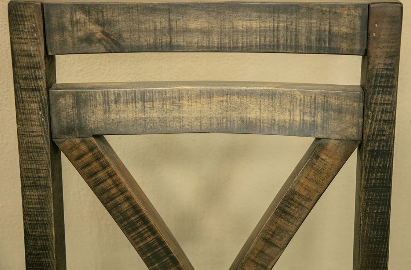 - Hand-painted finish in a gray and brown color scheme for a “reclaimed wood” look.