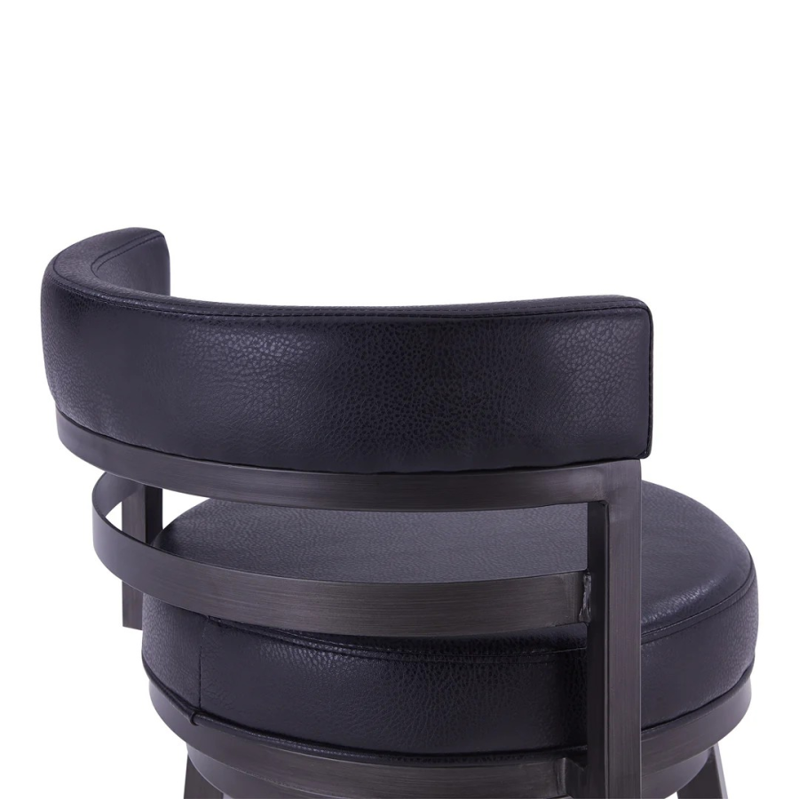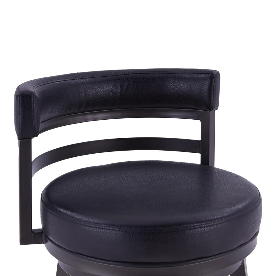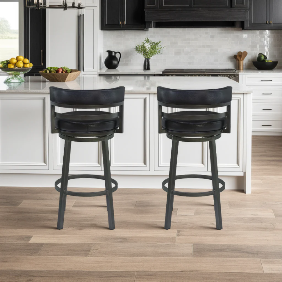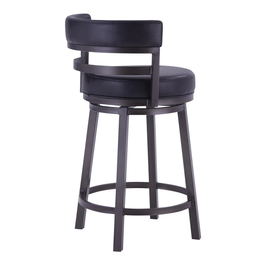 Style and function come together in harmony with the Madrid 26" Counter Height Swivel Black Faux Leather and Mineral Finish Bar Stool. Its armless design makes this the perfect addition to any home or apartment as it allows you to pull the kitchen stool as close as needed to your kitchen island, peninsula counter, or home bar. The Madrid frees you of any visual constriction with the 360-degree swivel motion, helping to keep you engaged with your friends at family at gatherings. The upholstered low back is rounded, providing the user with exceptional ergonomic support. The Madrid’s padded bar seat and back are constructed from high-density foam and wrapped in soft faux leather upholstery that will keep you comfortably seated for hours on end. The strong metal frame that’s further accented by the inclusion of a round footrest. The Madrid's legs are tipped with floor protectors, assuring that the bar stool will not slip on or scratch hardwood or tile floors, ensuring a durable bar or counter stool that will last for many years to come. The Madrid bar or counter stool is available in 26” or 30” seat height and comes in a brushed stainless steel finish with black, grey, white, blue, green, or red faux leather upholstery; a mineral finish with bandero tobacco or ford black faux leather upholstery, an auburn bay finish with brown faux leather upholstery, or a black finish with ford black faux leather upholstery.