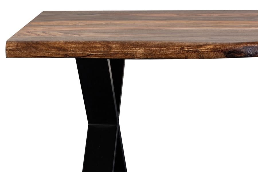The Manzanita Collection is made from sustainably sourced sheesham wood, the variation in grain, color and texture makes each piece one of a kind. Architectural metal bases can be mixed and matched for personal customization. Handcrafted by artisans to create a live edge finish, this beautiful solid wood collection features heirloom quality furniture built to last a lifetime. A rich, honey-toned Harvest finish accentuates the beautiful grain variation.