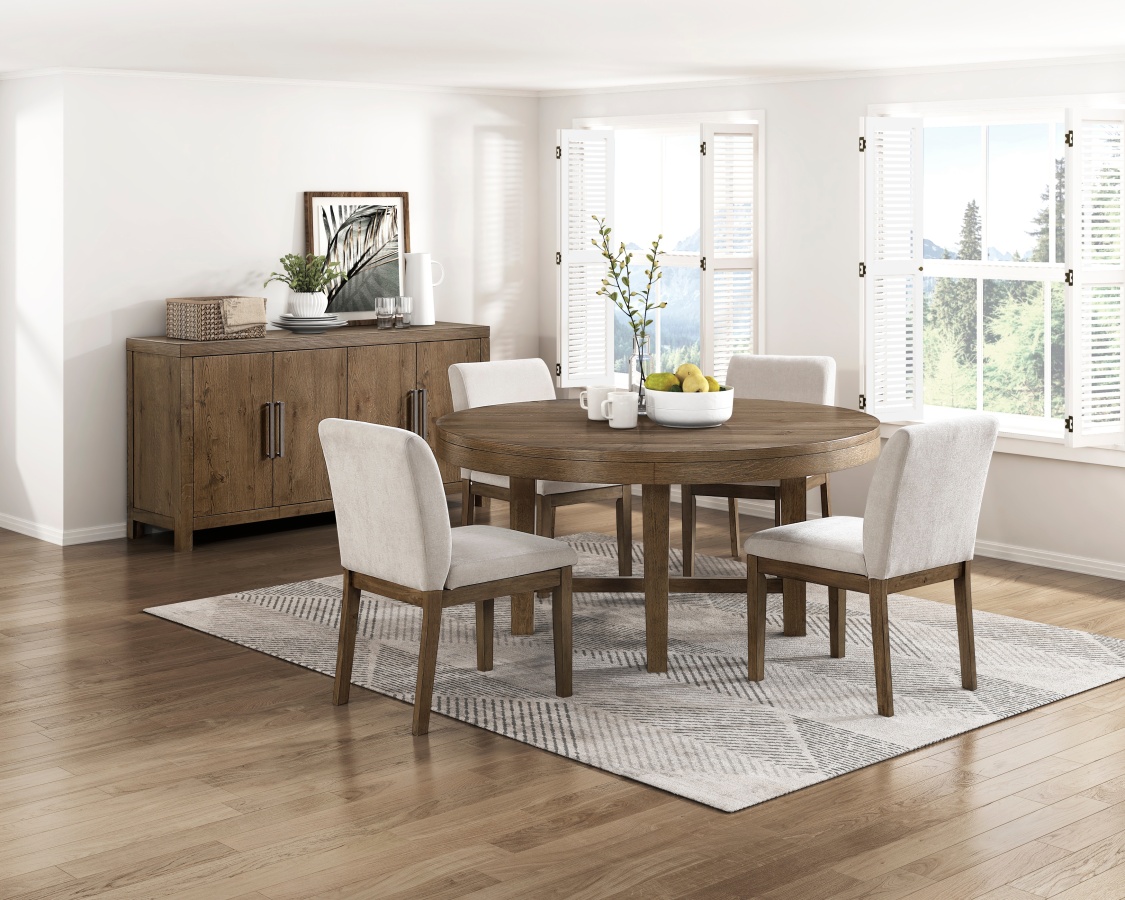 Gather family and friends around this stunning round dining table, a perfect centerpiece for your modern farmhouse or transitional dining room. Expertly crafted from premium French oak veneer, wood and engineered wood, it features a rich brown finish that highlights the organic beauty of natural wood grains. The spacious 60-inch tabletop comfortably seats up to 6 guests, while the sturdy X-base pedestal design provides ample legroom and a sophisticated architectural silhouette for everyday meals or festive holiday gatherings.