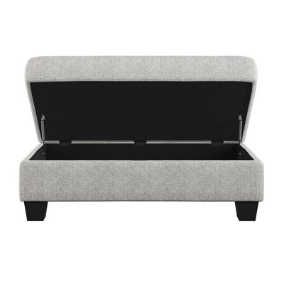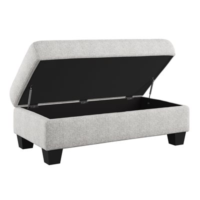 The Myles collection brings a sense of relaxed sophistication to your space. A storage cocktail ottoman keeps essentials close at hand yet out of sight. Upholstered in light gray chenille with a faint patterned texture, the Myles collection is designed for spaces where style meets everyday living.