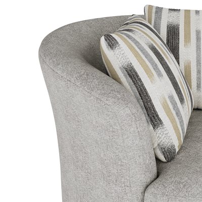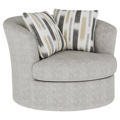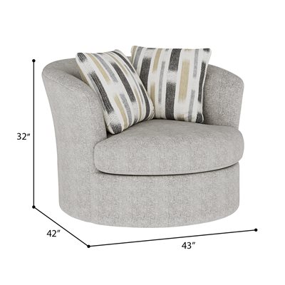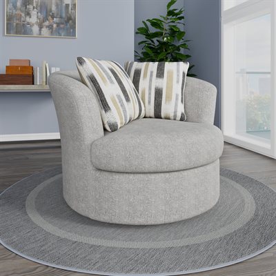 The Myles collection brings a sense of relaxed sophistication to your space. A roomy swivel chair invites you to sink in and unwind, offering a cozy spot to relax or enjoy conversation. Upholstered in light gray chenille with a faint patterned texture, the Myles collection is designed for spaces where style meets everyday living.