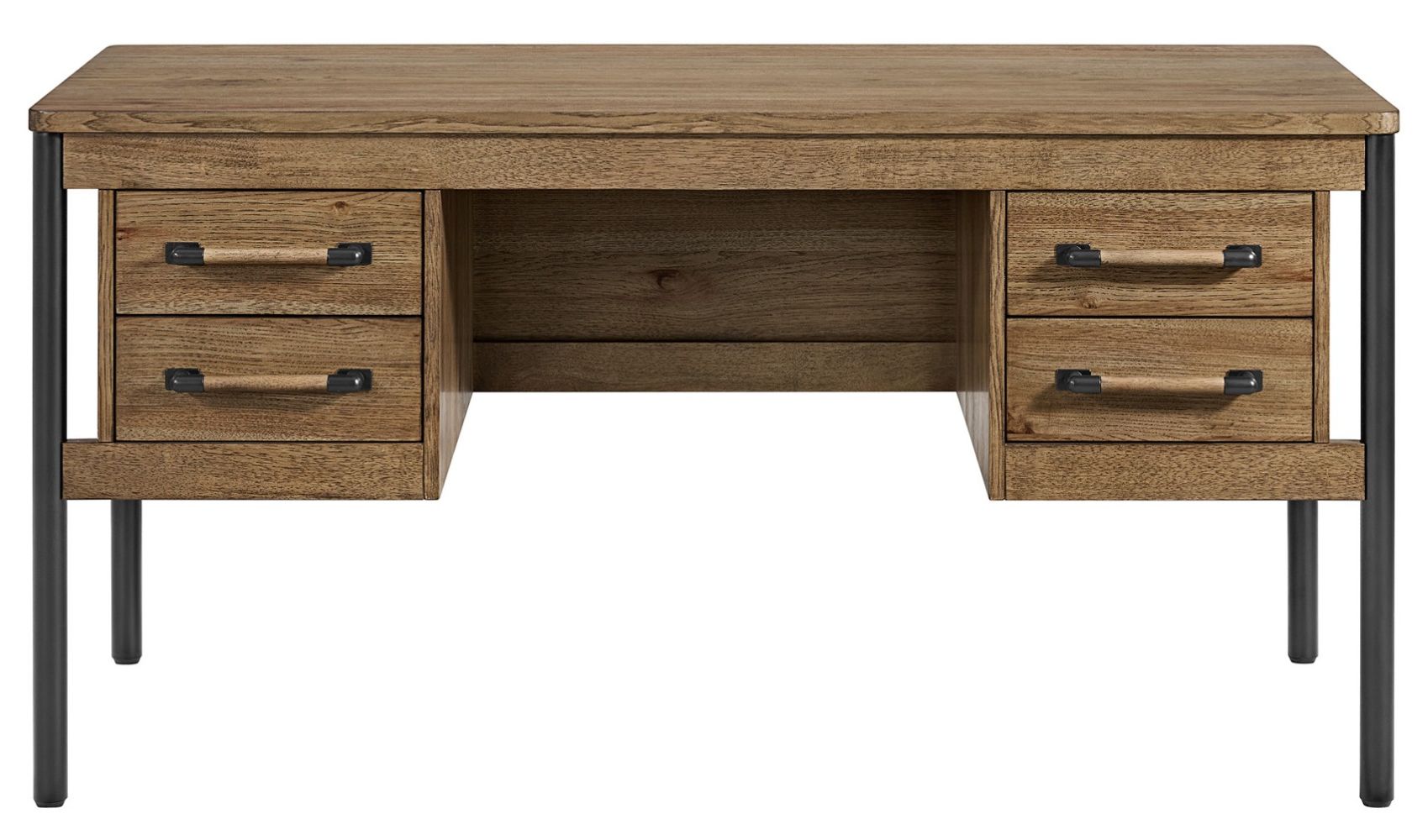 The Industrial Modern style of the Norcross Home Office group blends the natural beauty of its rustic veneer with its clean lines and abundant metal accents throughout. This collection features custom designed wood and metal hardware and is finished in a warm and inviting hickory finish.