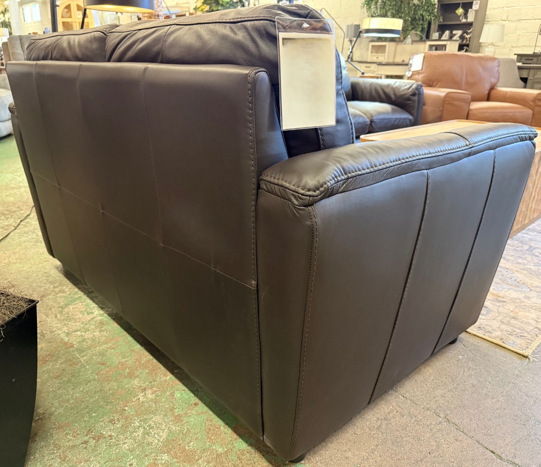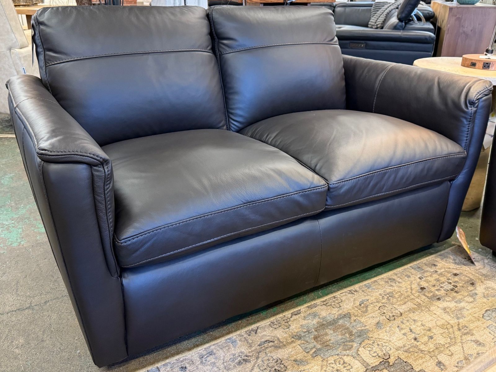 The Oslo Mountain Loveseat brings modern style and timeless comfort together in one elegant package. Designed with clean lines and generous proportions, this loveseat offers plush back and seat cushion that deliver exceptional, sink-in comfort. It's beautifully upholstered in high-quality leather that adds warmth and versatility to any décor. Whether you're lounging solo or gathering with family and friends, the Oslo Mountain Loveseat offers a cozy, sophisticated centerpiece for your living space that’s built to last.