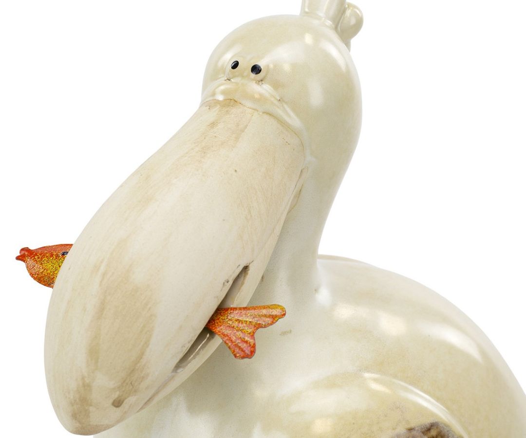 This charming Pelican Figurine brings coastal whimsy and delicate artistry to any room. Crafted entirely from high-quality ceramic with a sophisticated beige finish, this decorative accent features a plump, rounded body and an endearing stance. Standing 10 inches high, 7 inches long, and 4 inches wide, this eye-catching piece makes the perfect statement accessory for shelves, mantels, or side tables. The figurine showcases intricate details like subtle glazing and textured features, while the neutral palette complements both modern and traditional decor styles. Ideal for coastal-inspired spaces, nature-themed collections, or as standalone decorative elements, this ceramic pelican adds personality and artistic flair to any interior design scheme. The versatile size and timeless appeal make it an excellent addition to beach houses, modern homes, or anywhere seeking a touch of nautical charm.