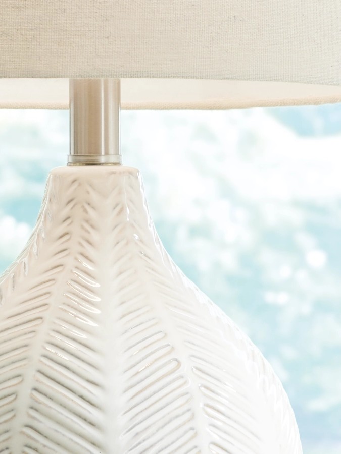 Reflect your effortlessly chic sensibility with the artful Rainermen ceramic table lamp. Its textural surface is enriched with a herringbone pattern and a gorgeous glaze for a hint of sheen. Whether your look is clean and modern or cool and eclectic, this lamp is perfectly suited to fit right in.