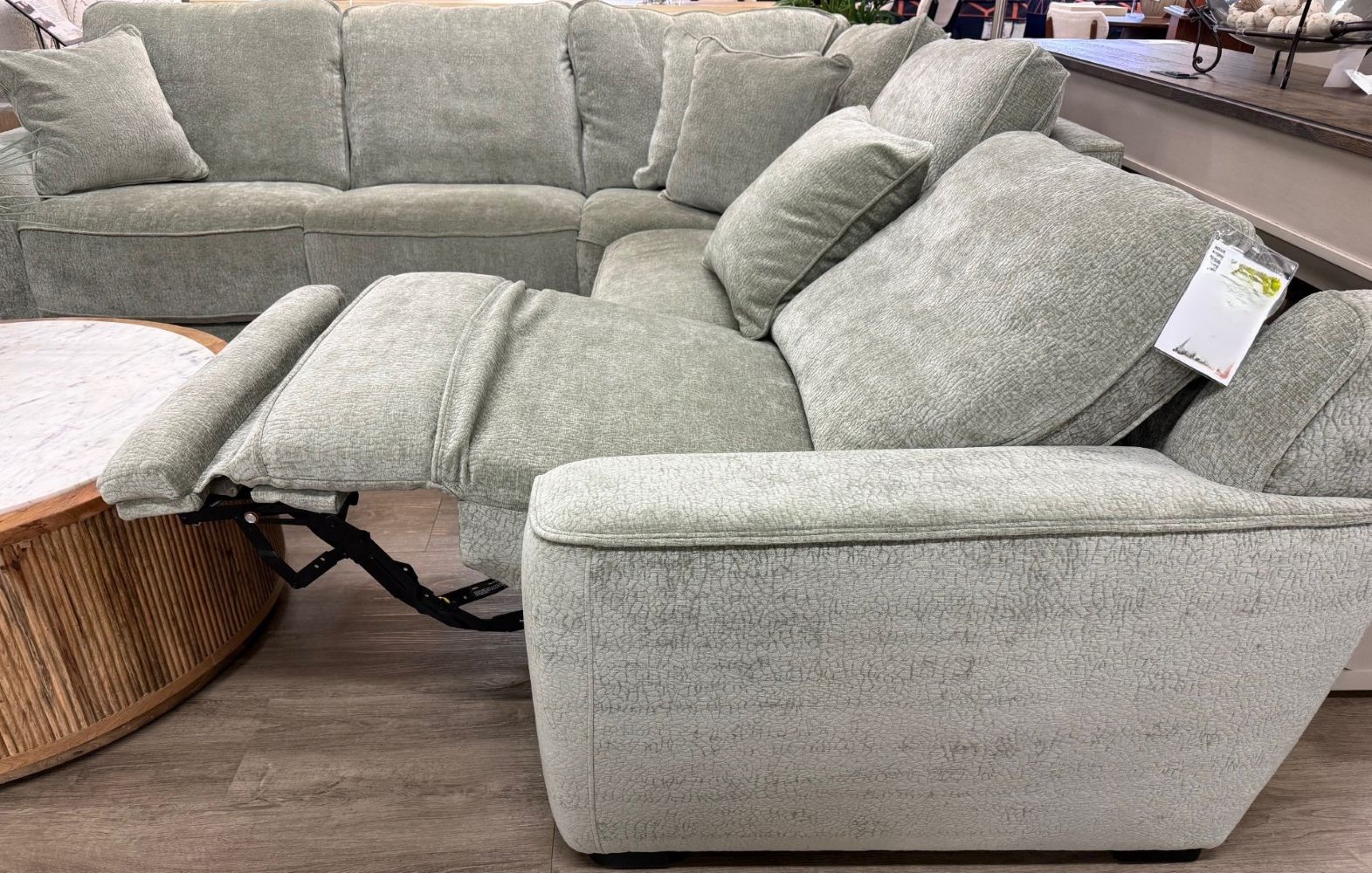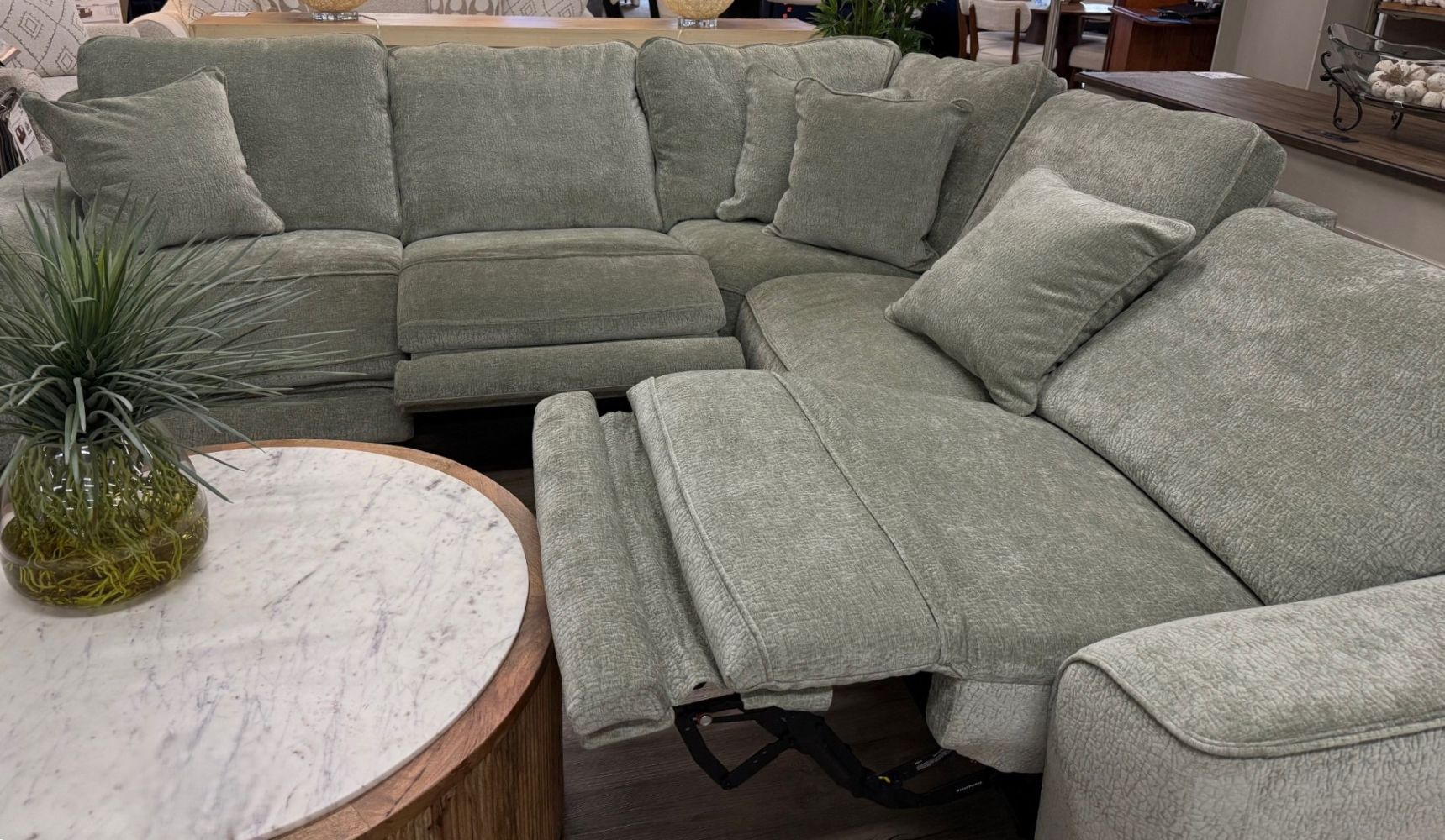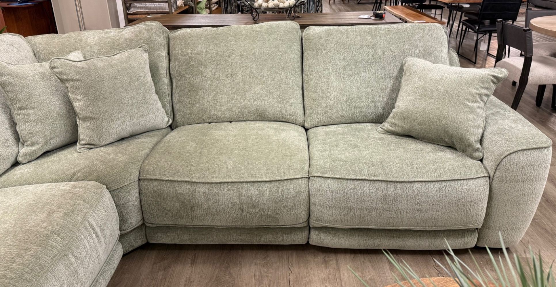 Upholstered in a plush, inviting fabric in a calming sage green hue, this sectional delivers both sophisticated style and unmatched relaxation. Perfect for large families, entertaining guests, or simply stretching out in luxurious comfort. Enjoy effortless relaxation with smoothly operating reclining seats, perfect for watching movies or napping. Four coordinating toss pillows provide extra comfort and a finishing touch to the stylish design.