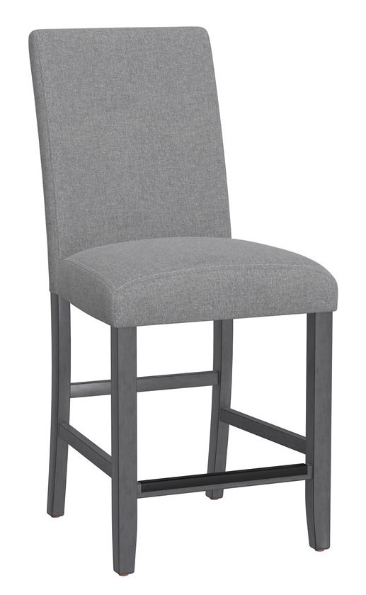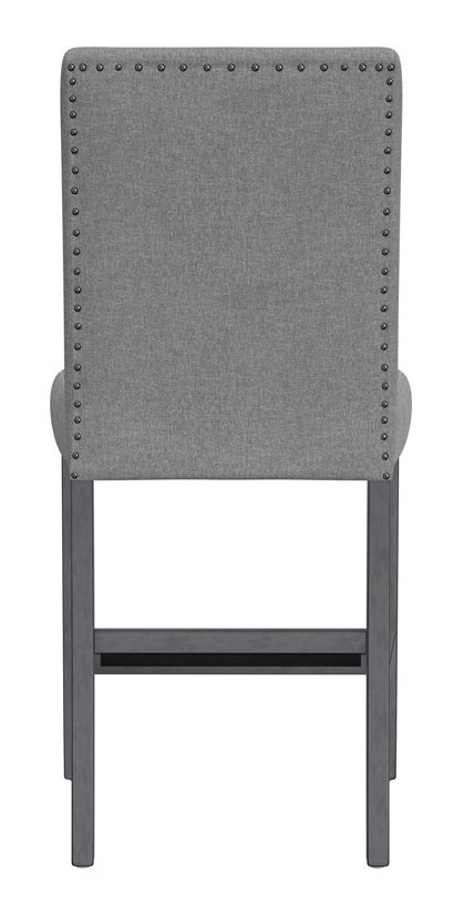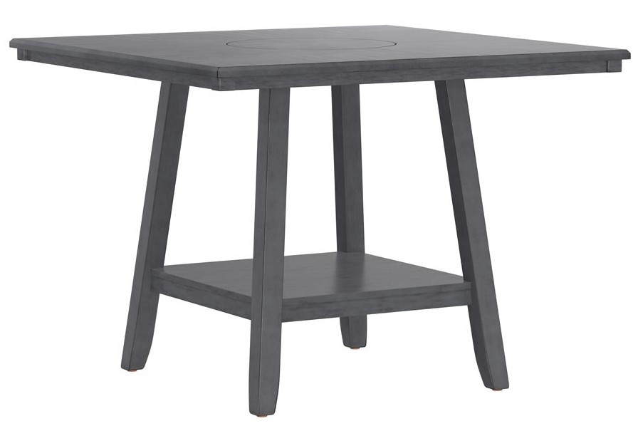 The transitional Seneca collection hosts a unique blend of features and seating options. A delightful medium gray finish on walnut veneers forms a quarter-turned pattern on the tabletop, culminating in the built-in 18” lazy Susan. The tapered frame spreads out to encompass a lower shelf for extra storage. Seating with light gray upholstery and gently curved backs decorated with nailhead trim, you can stay more traditional with just stools or more casual by mixing in a bench or two. Accentuate your personal style and give the Seneca a whirl.