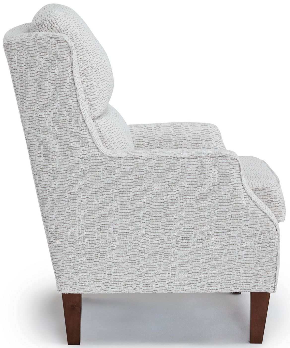 The Sulton Accent Chair offers a sculpted presence and elevated details that complement a wide range of interiors—from classic to modern eclectic. With a tall wing back and bustle-style cushioning, it delivers generous head support while allowing for subtle adjustments through dual hidden zippers.