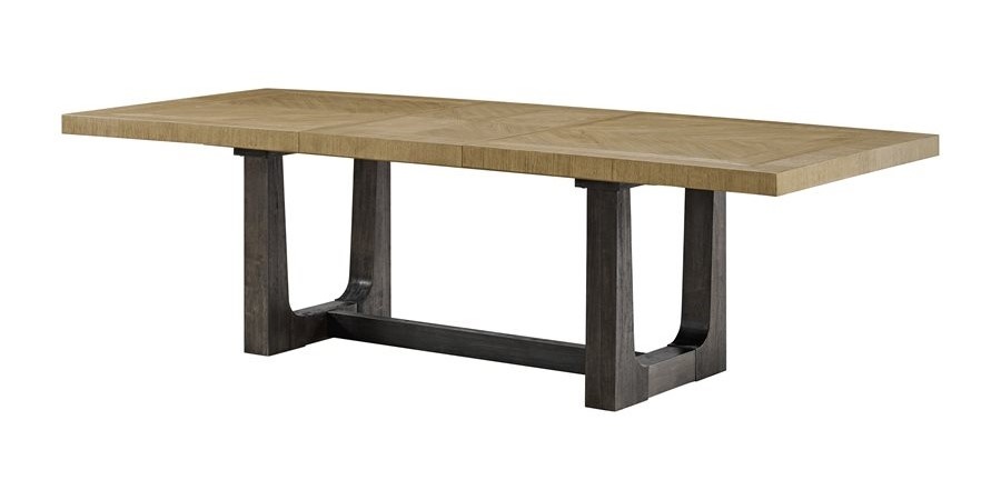The Sutton Place dining collection embodies relaxed contemporary style with a focus on the natural beauty of oak. Crafted with tight-grain, book-matched oak veneers framed by a contrasting straight grain border, the tabletops showcase a warm caramel tone atop cocoa trestle bases. Available in an extendable dining table or fixed-top bar height option, the Sutton Place seating pairs a creamy white nubby boucle upholstery for added texture. With a coordinating sideboard hiding drawers and shelving behind framed panel doors, the Sutton Place creates a sophisticated yet inviting dining space.