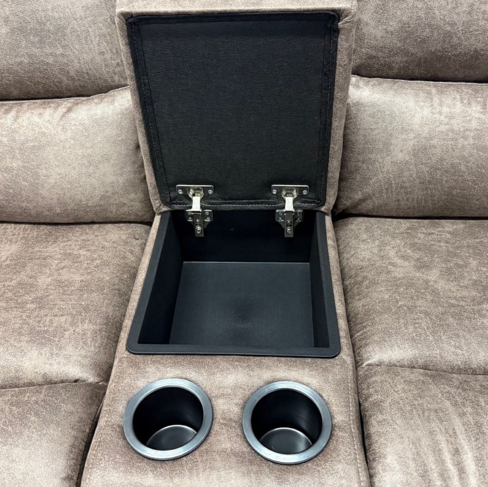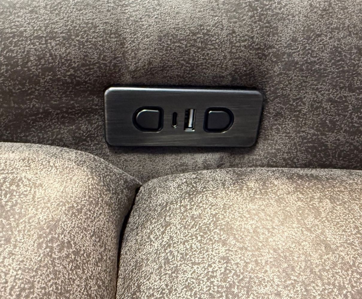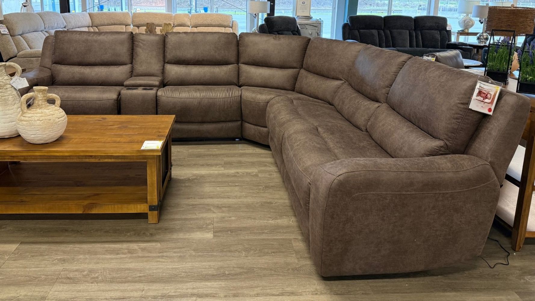 Designed for spacious comfort and modern functionality, this modular set combines the sleek, sophisticated look of leather with the velvety softness of high-performance microfiber. Finished in a warm Texas Slate, this fabric is engineered for durability and stain resistance, making it an ideal choice for busy family rooms.