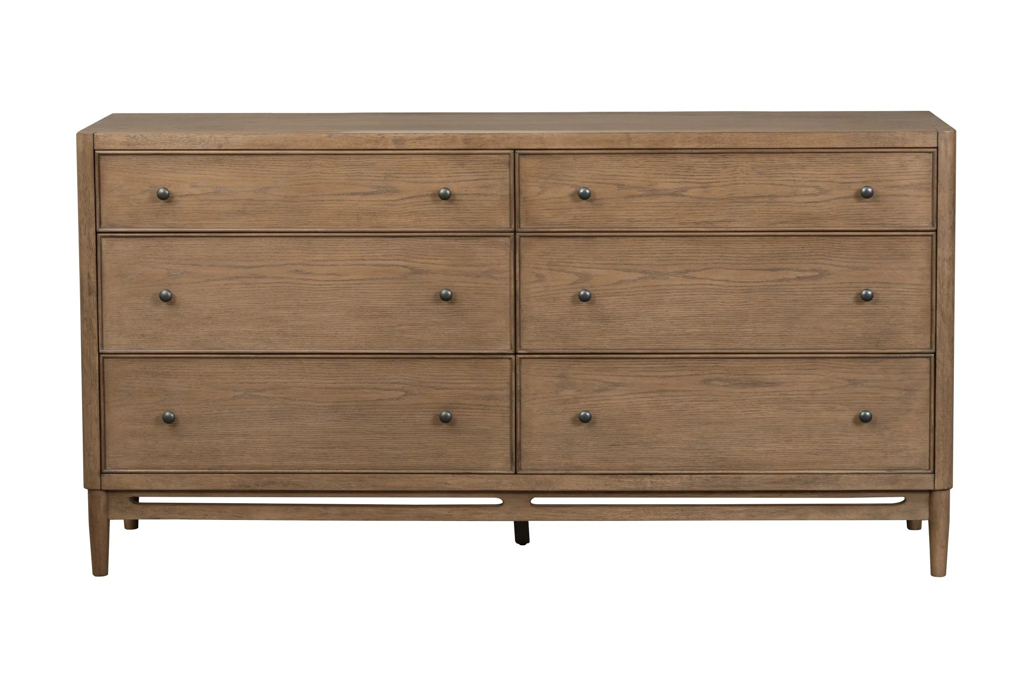 Make a statement with the Verona dresser, designed for those seeking true transitional elegance. Its soft curved base details and rich medium brown oak finish create an elevated bedroom space. Fashioned from rubberwood solids and white oak veneers, and adorned with antique bronze hardware, this dresser is sure to be an enduring staple in your home. With ample space in six soft-closing drawers, the Verona is the ultimate in functionality and sophistication.