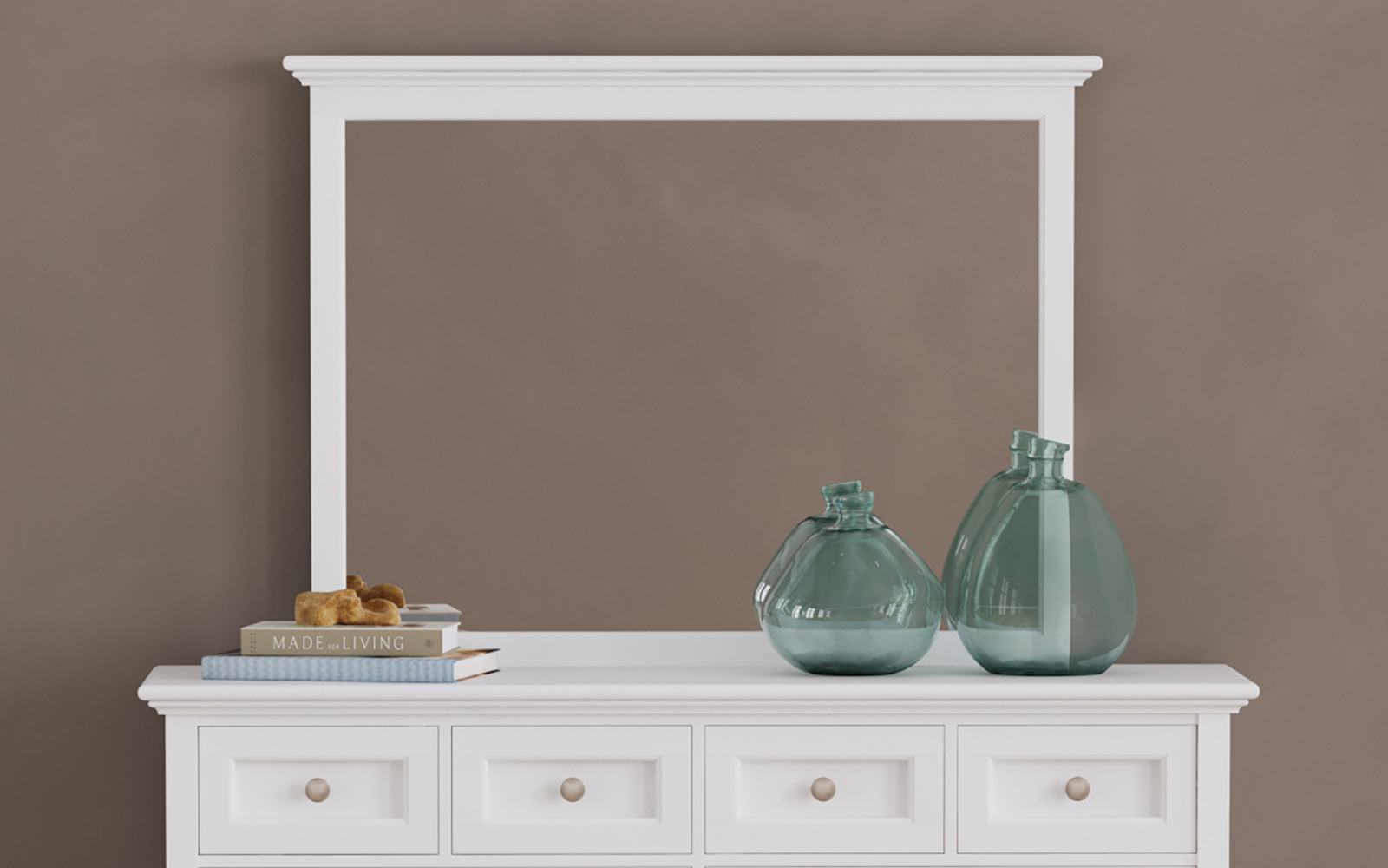 The Westlake White Bedroom Collection blends modern simplicity with classic Shaker craftsmanship, offering a timeless aesthetic in a crisp, fresh white finish. Crafted from solid mahogany, this collection embodies both elegance and durability, with clean lines and subtle panel details that evoke a sense of refined serenity. The storage bed is a perfect marriage of style and functionality, featuring spacious side drawers for additional organization, making it an ideal solution for smaller spaces. Designed with practicality in mind, each piece features dovetail drawer boxes and ball bearing glides for effortless access. Whether furnishing a cozy retreat or a spacious master suite, Westlake White offers enduring quality and modern charm to elevate any bedroom setting. The Westlake White Bedroom Collection blends modern simplicity with classic Shaker craftsmanship, offering a timeless aesthetic in a crisp, fresh white finish. Crafted from solid mahogany, this collection embodies both elegance and durability, with clean lines and subtle panel details that evoke a sense of refined serenity. The storage bed is a perfect marriage of style and functionality, featuring spacious side drawers for additional organization, making it an ideal solution for smaller spaces. Designed with practicality in mind, each piece features dovetail drawer boxes and ball bearing glides for effortless access. Whether furnishing a cozy retreat or a spacious master suite, Westlake White offers enduring quality and modern charm to elevate any bedroom setting.